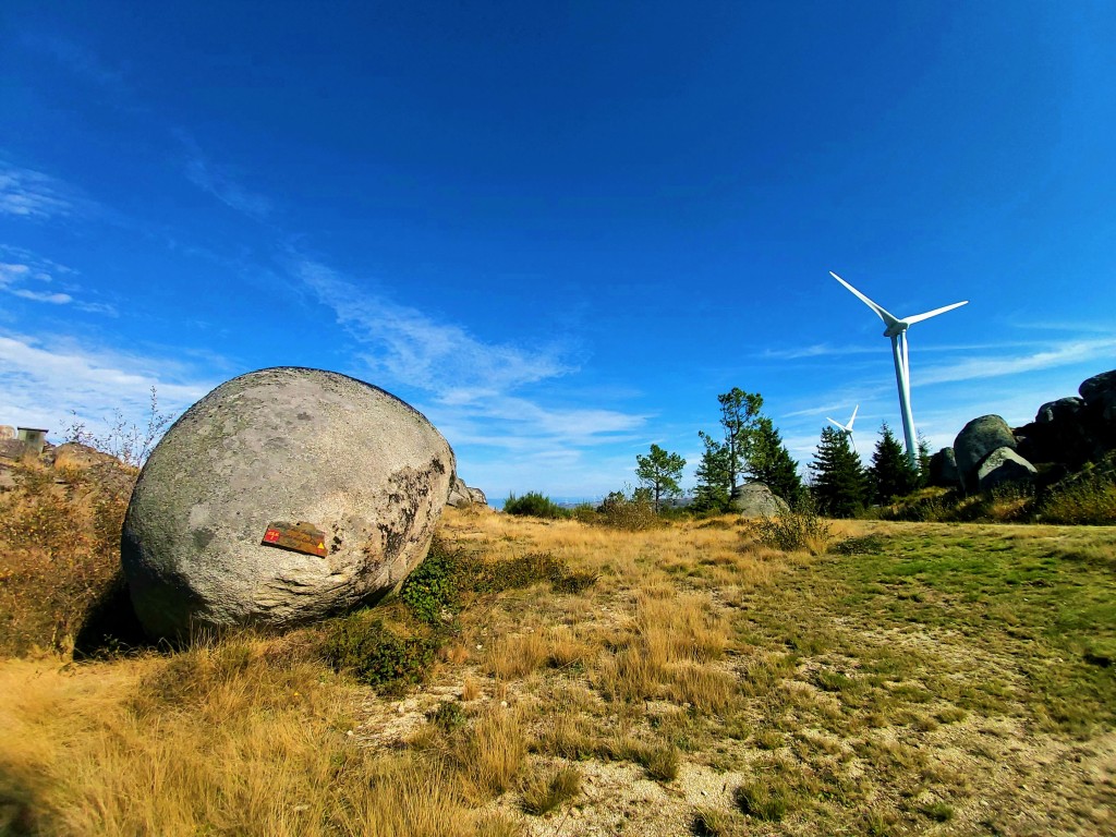 Com as eólicas no horizonte, percorrem-se caminhos mais recentes, rasgados para a implantação do parque eólico do Caramulo, testemunho dos tempos modernos. Daqui, aconselha-se a visita a um emblemático cabeço - o Cabeço que Abana - sendo necessário o pedestrianista desviar-se, cerca de 1,5 km, do trilho principal (ida e volta).