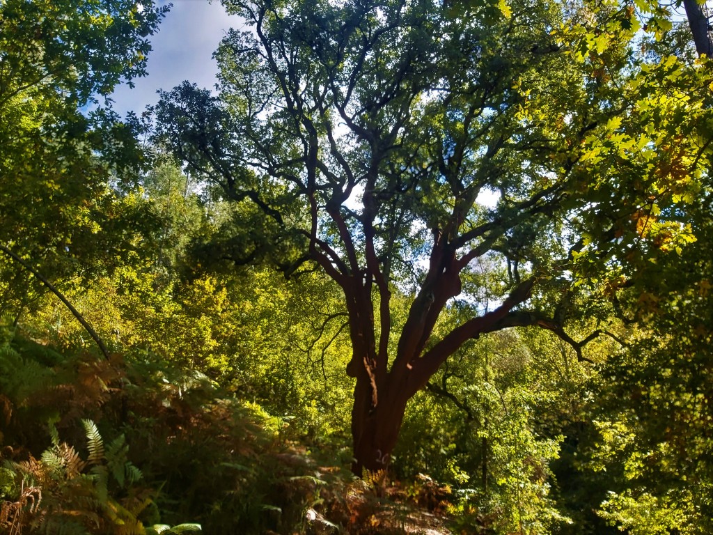 Ainda que rodeado de carvalhos e castanheiros, com a descida começam as evidências do Sobreiral. Exemplares raros, alguns contando mais de 200 anos de histórias, elucidam a coexistência de espécies florestais e os resultados positivos da sua preservação.